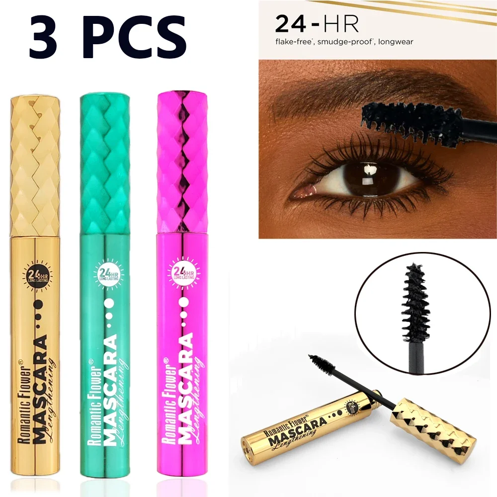 3D Lengthening Mascara Women Waterproof Eyelash Fiber Curl Long-Wearing Natural Eye Lashs Extension ...
