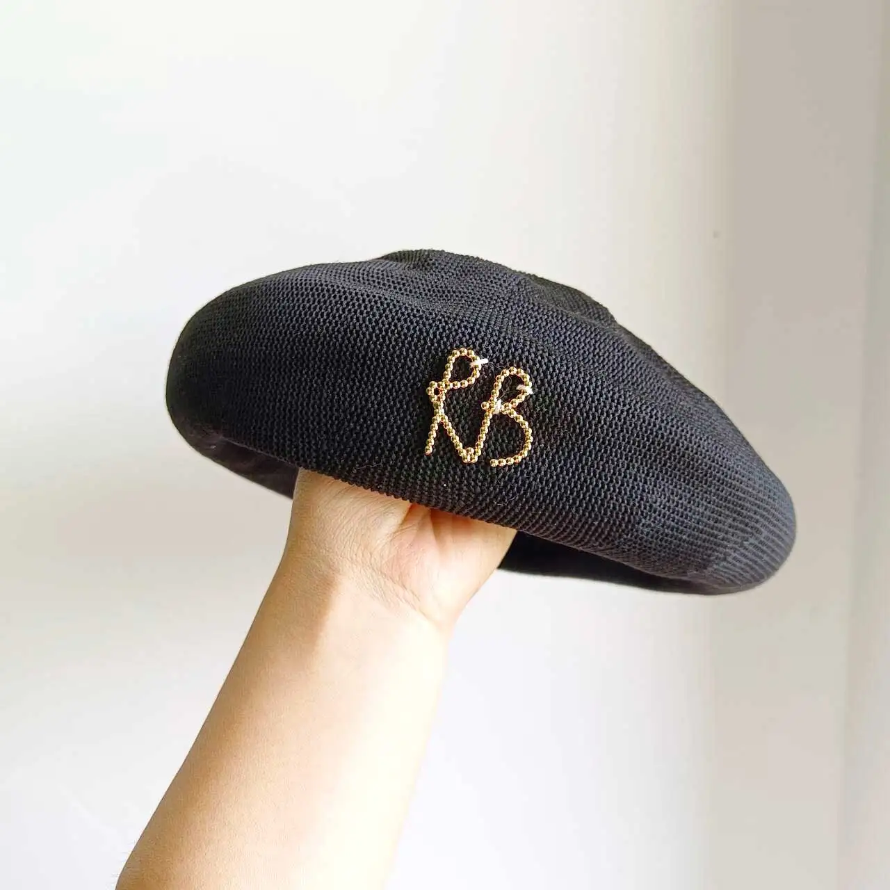 Französische Sommer-Baskenmütze für Damen, englische Metallbuchstaben, Bonbonfarben, ...