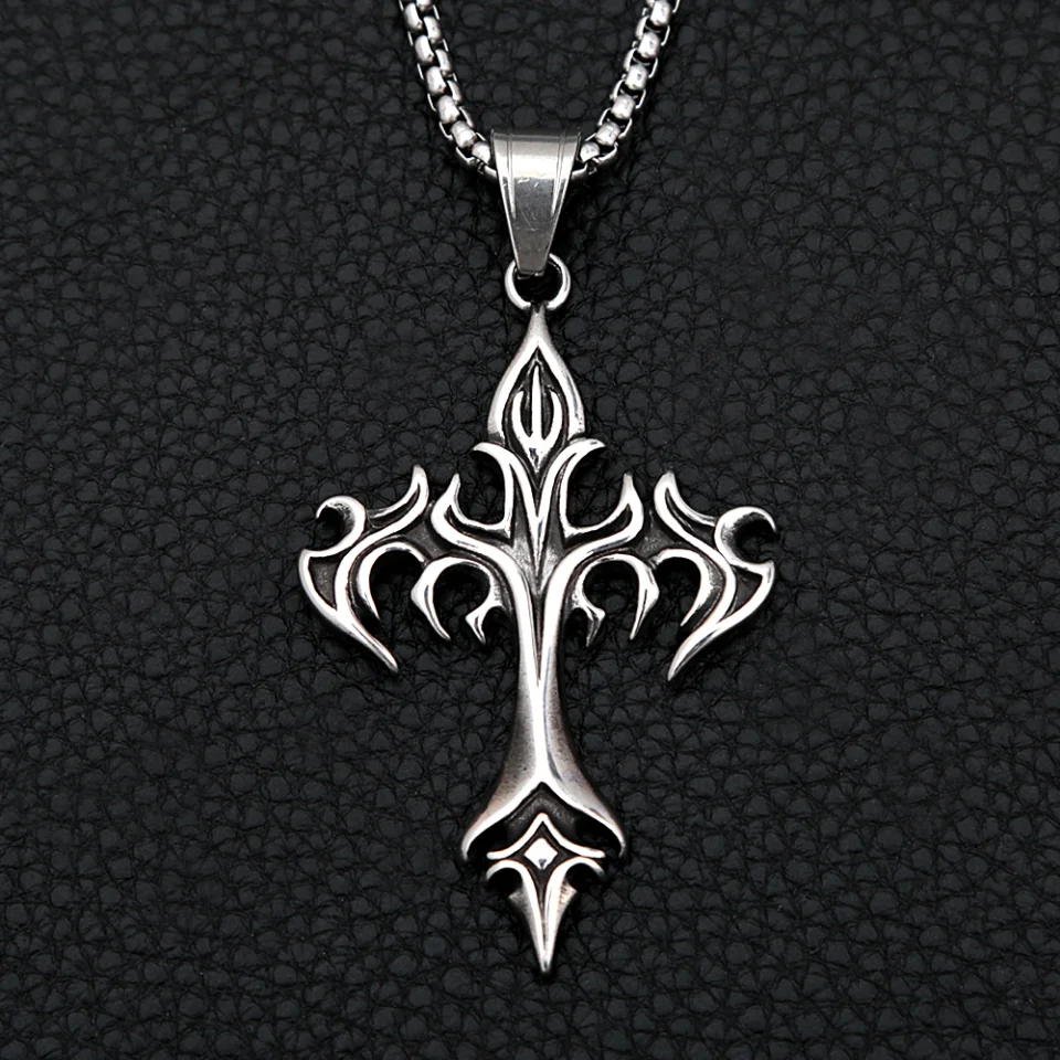 Gothic Vintage Flamme Kreuz Anhänger Halskette Punk Hip Hop Edelstahl Kreuz Halsketten für...