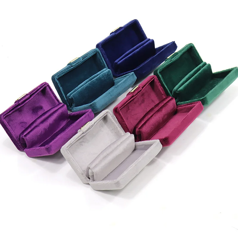 Abgerundete Ring-Schmuckschatulle aus Samt mit Goldschnalle, Paar Ring-Schmuck-Verpackungsbox, Ohrri...