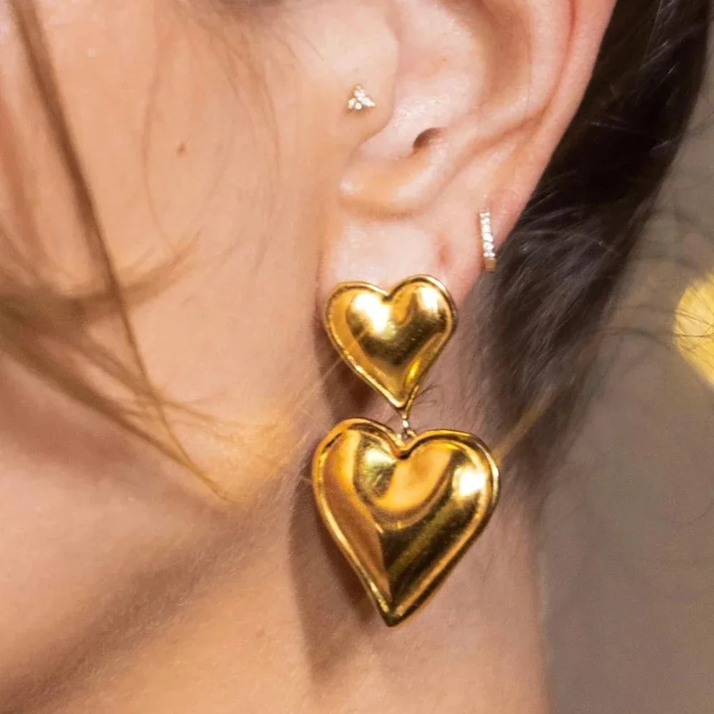 Glänzende große Metall Doppel herz Tropfen Ohrringe für Frauen Teenager Mode Gold Fa...