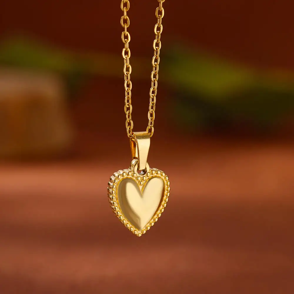 Vintage Glänzende Herz Anhänger Edelstahl Halskette F&uum...