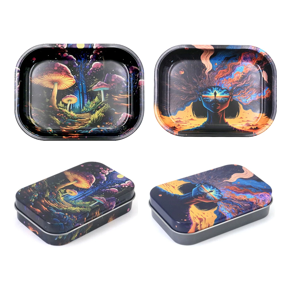 2 Teile/satz Zigarette Fall Roll Tablett Weißblech Box Mit 18x14cm Tabak Roll Tablett Muster M...