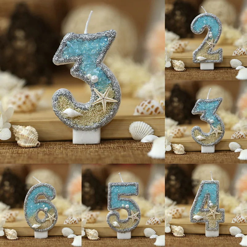 Kerzen mit Zahlen im Ozean-Motiv, 0–9, Kuchendekoration, Somm...