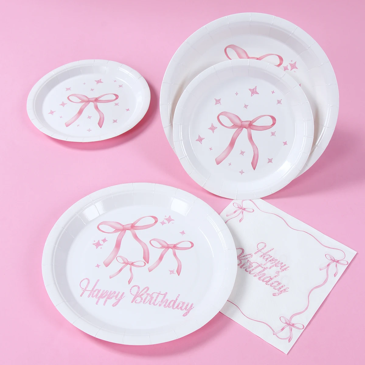 Rosa Schleife Einweggeschirr Mädchen Geburtstag Party Pappteller Servietten Tassen Dekor Babypa...