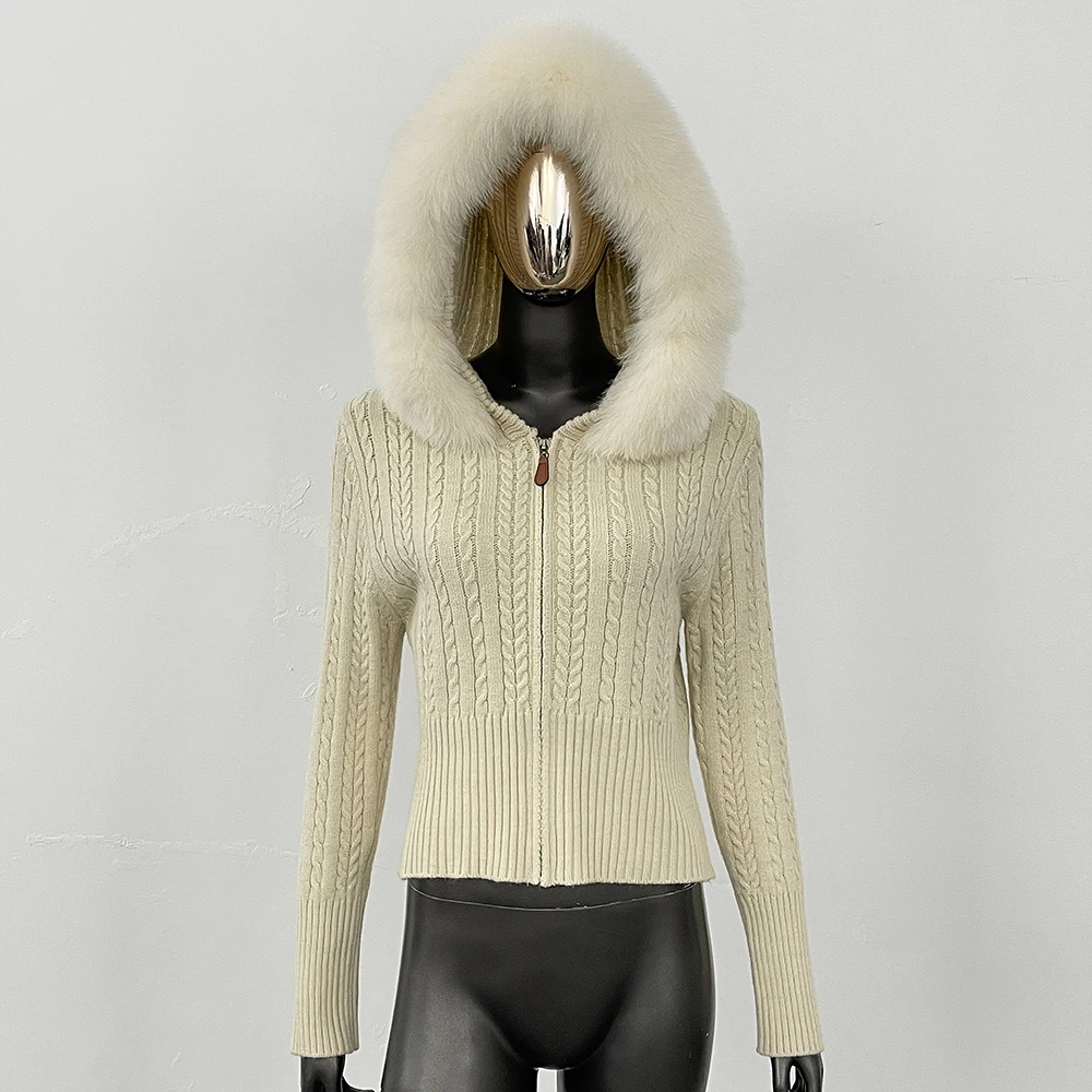 Reality Pelz Jacke Pullover Set Frau Frühling Gestrickte Anzug Strickwaren Weibliche Echt Fox P...