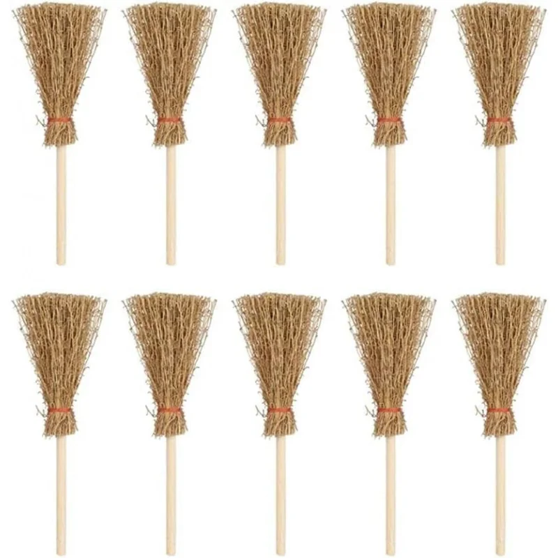 10 Stück Mini-Besen, Hexenstroh-Besen, Puppenhaus-Puppenhaus-Zubehör, Requisiten, Miniatur...