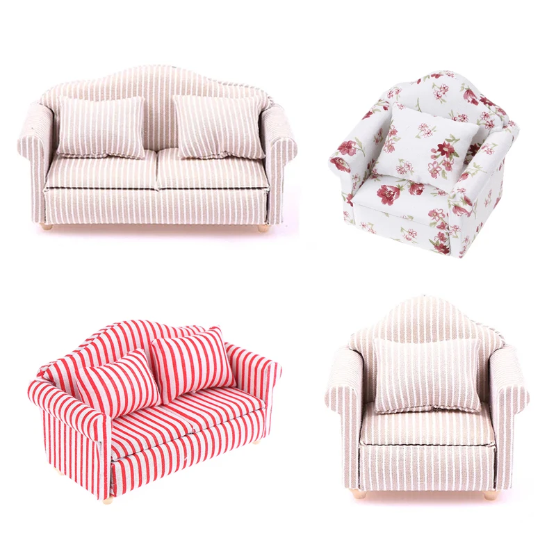 1:12 puppenhaus Miniatur Gestreiften Möbel Sofa Mit Kissen Sof...