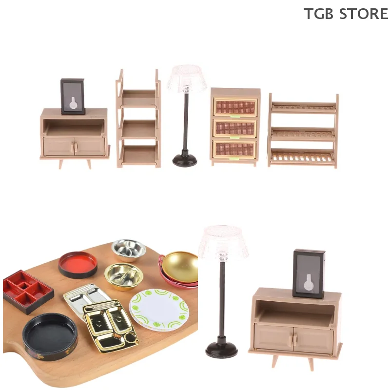 1/12 Puppenhaus Schuhschrank Bücherregal Stehlampe Wanduhr Puppenhaus Wohnzimmer Möbel Dek...