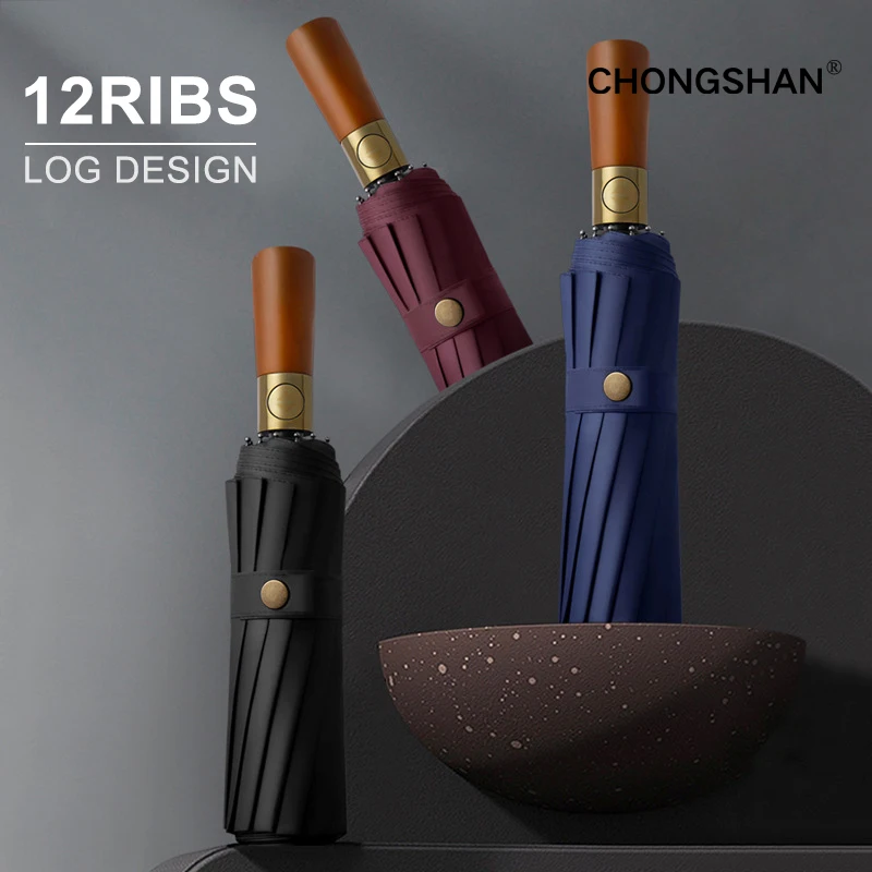 UV-Regenschirm für Männer Frauen 12 Rippen Holzgriff Automat Regenschirm wind dichte Falte...