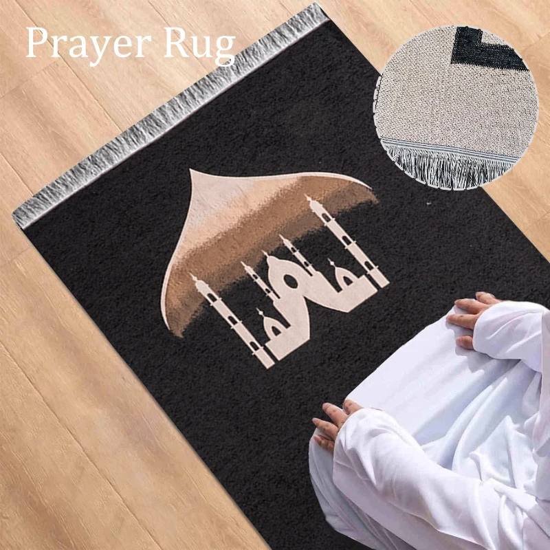 Islamische Gebetsmatte – dünn gewebter Chenille Sajjadah Gebetsteppich Ramadan Eid Gesche...