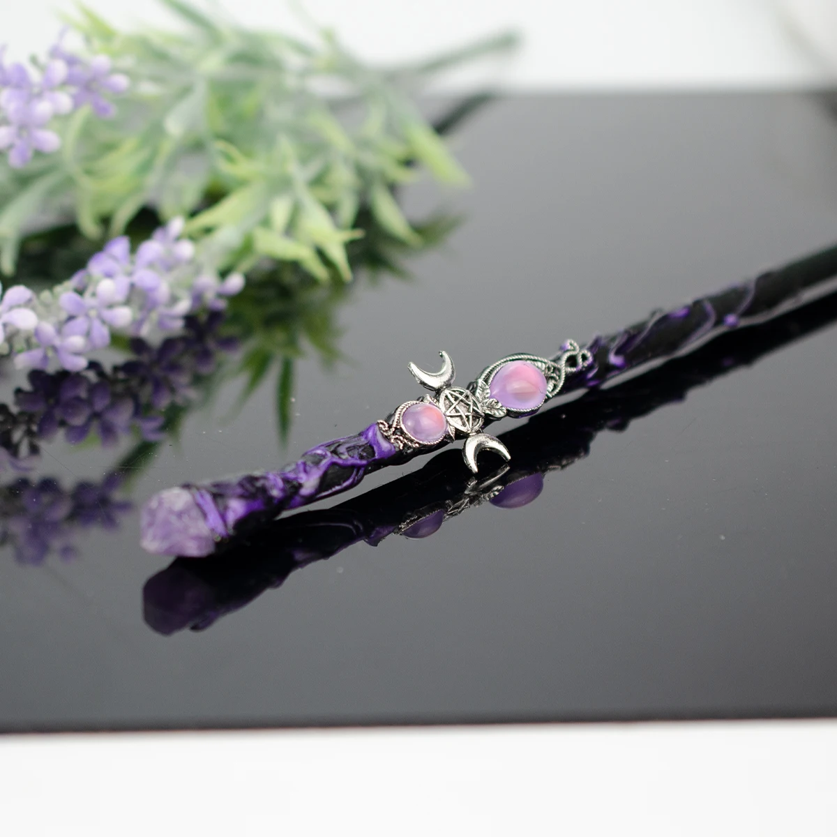 Natürliche Amethyst Kristall Triple Moon Zauberstäbe für Frauen Männer geheimnis...