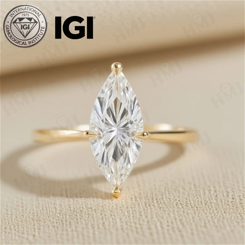 Damen-Diamantringe, personalisierbar, Marquise-Form, 10 Karat, 14 Karat, 18 Karat Gold, IGI-Zertifik...