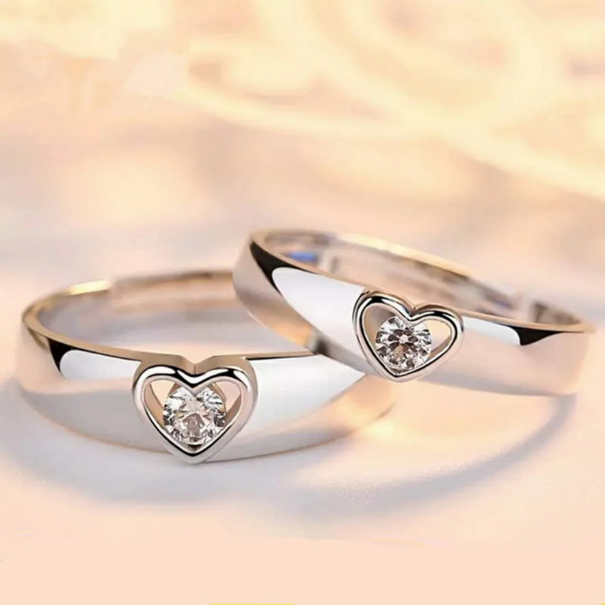 2 Teile/satz Romantische Elegante Zirkon Liebe Herz Paar Ringe Für Frauen Männer Dainty Tr...