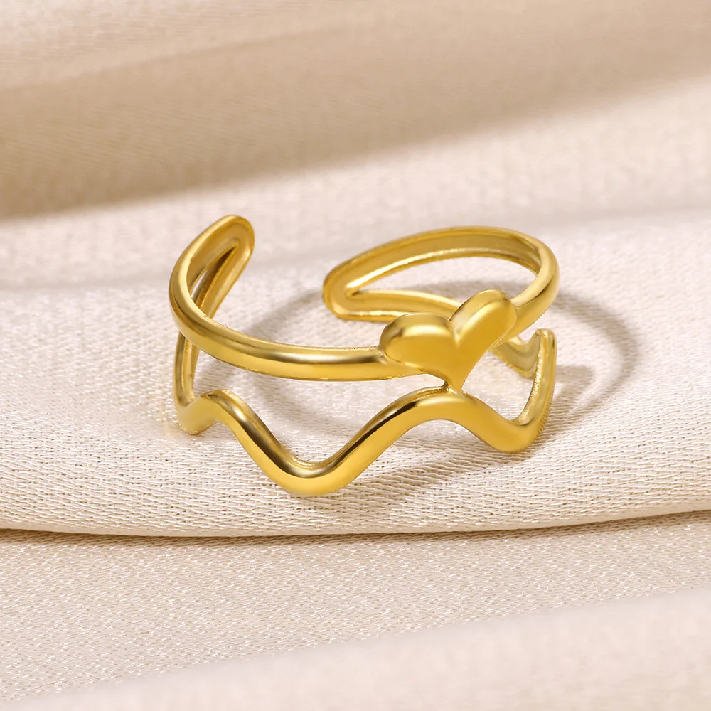 Zirkon Unregelmäßige Herz Ringe Für Frauen Männer Gold Farbe Edelstahl Herz Rin...