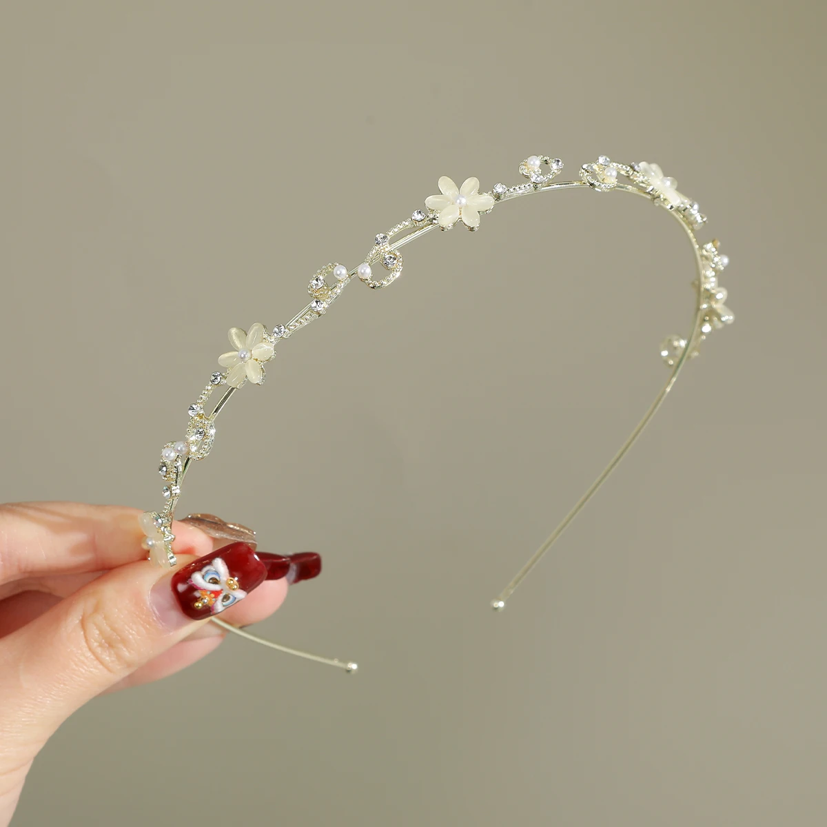 Einfaches hellblaues Haarband mit Kristallen und Perlen, breites Sa...