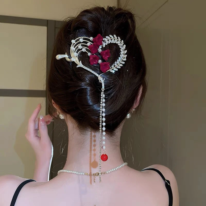 Retro chinesischer Stil Haarstab Gabelte Blume Perle Anhänger Design Damenbekleidung Kleider Sc...