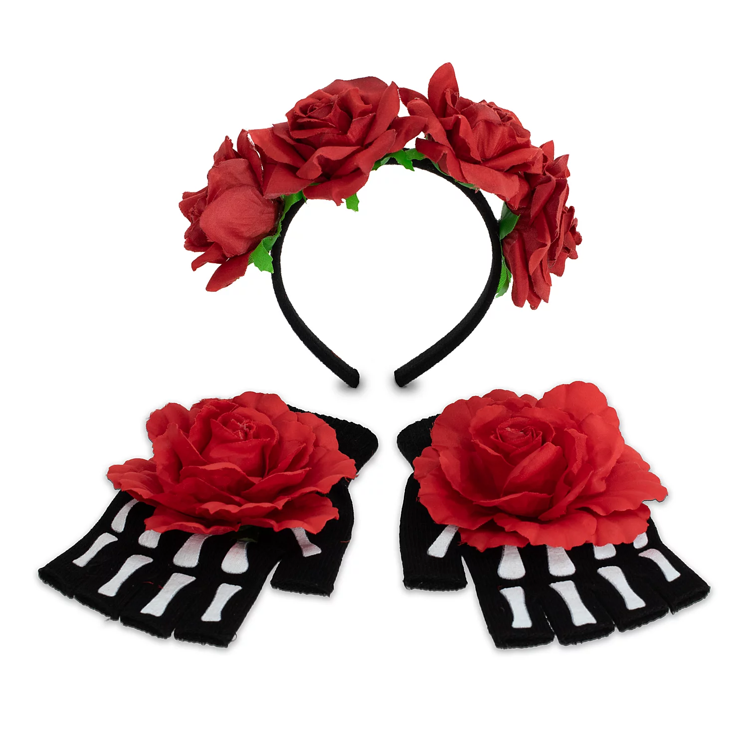 Set Tag der Toten – dieses Set aus Rosen-Haarreif und Skelett-Handschuhen verleiht Ihrem La-Ca...