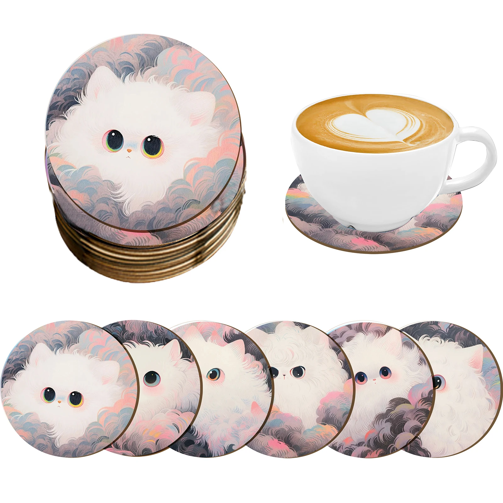 8 Stück/Set rutschfeste Untersetzer aus Holz mit Katzenmuster, geeignet für Bar- und Caf&e...
