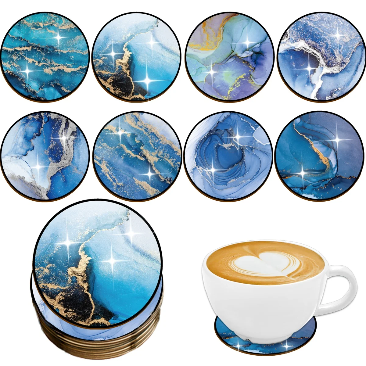 8er-Set rutschfeste Untersetzer aus Holz mit Ozeanmuster, geeignet für Bar- und Café-Dek...