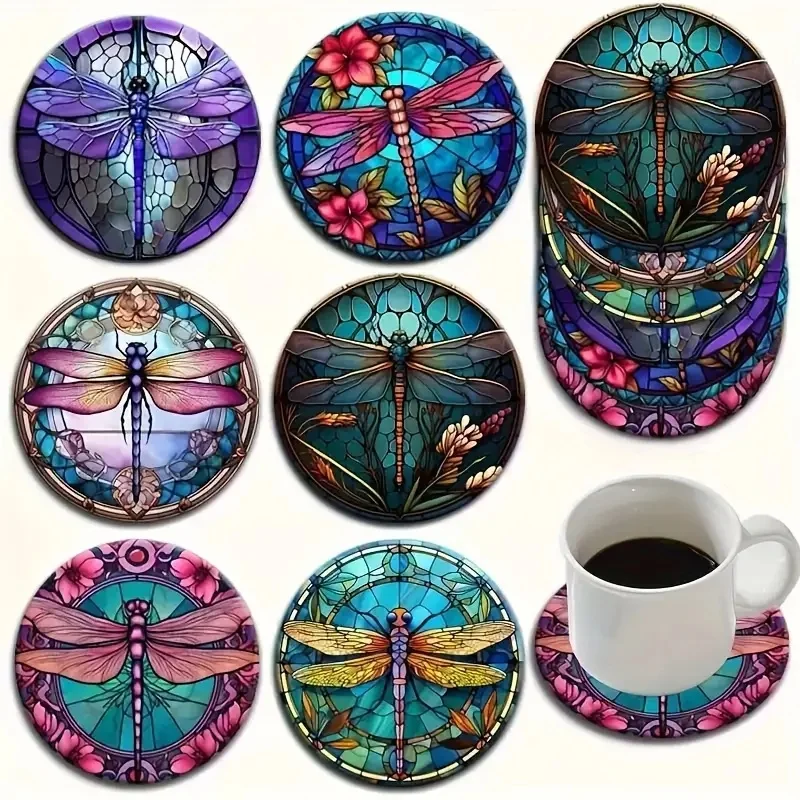 6er-Set rutschfeste Untersetzer aus Holz mit Libellenmustern, geeignet für rutschfeste Unterset...