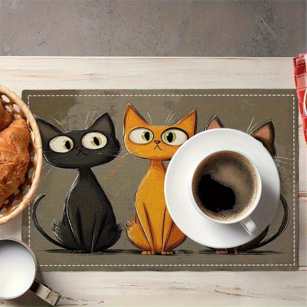 VIKAMA Tischset-Set mit Katzenmuster, 4-teiliges Set, rutschfeste, waschbare, einseitig bedruckte Ti...