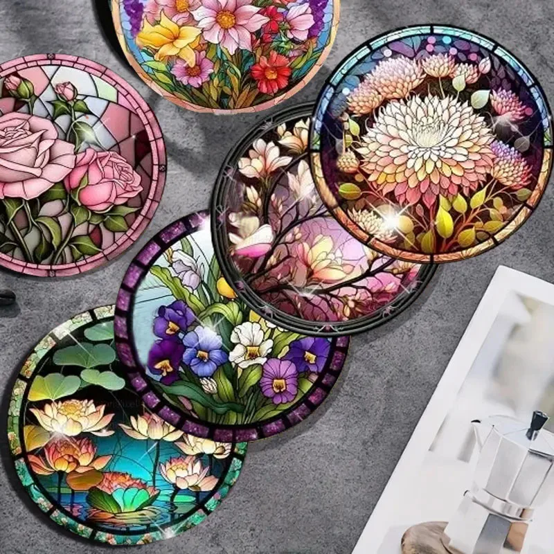 8er-Set rutschfeste Untersetzer aus Holz mit Blumenmuster, geeignet für Bar- und Café-De...