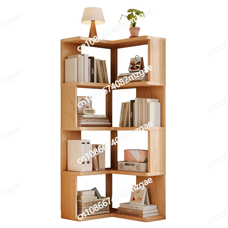 Eck-Bücherregal aus massivem Holz, Bodenregal, integrierte Wand, einfache Bücherregal-Aufb...