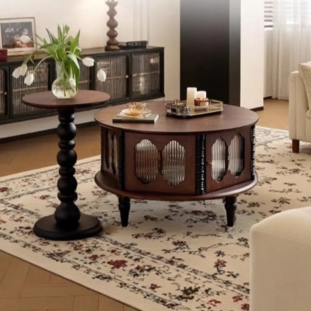 Couchtische aus Holz, Wohnzimmerdekoration, Ecktische, Aufbewahrung, Vintage, runder Tisch, Kombinat...