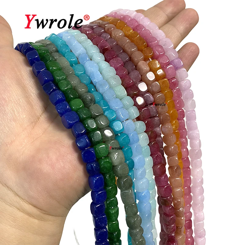 7-8MM Platz Aquamarin Chalcedon Naturstein Lose Würfel Spacer Perlen für Schmuck Machen Di...