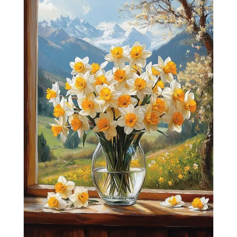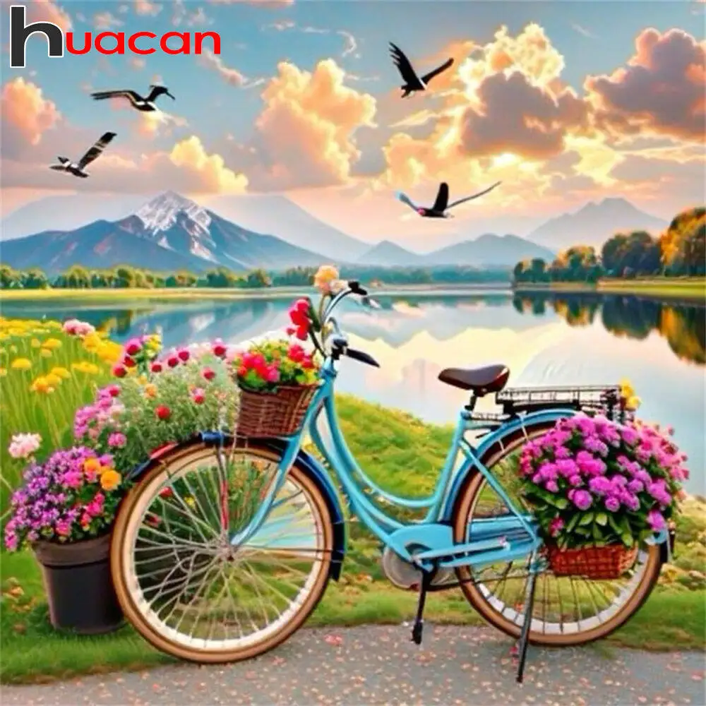 Huacan Frühlingslandschaft Diamantmalerei 5D DIY Fahrradblumen...