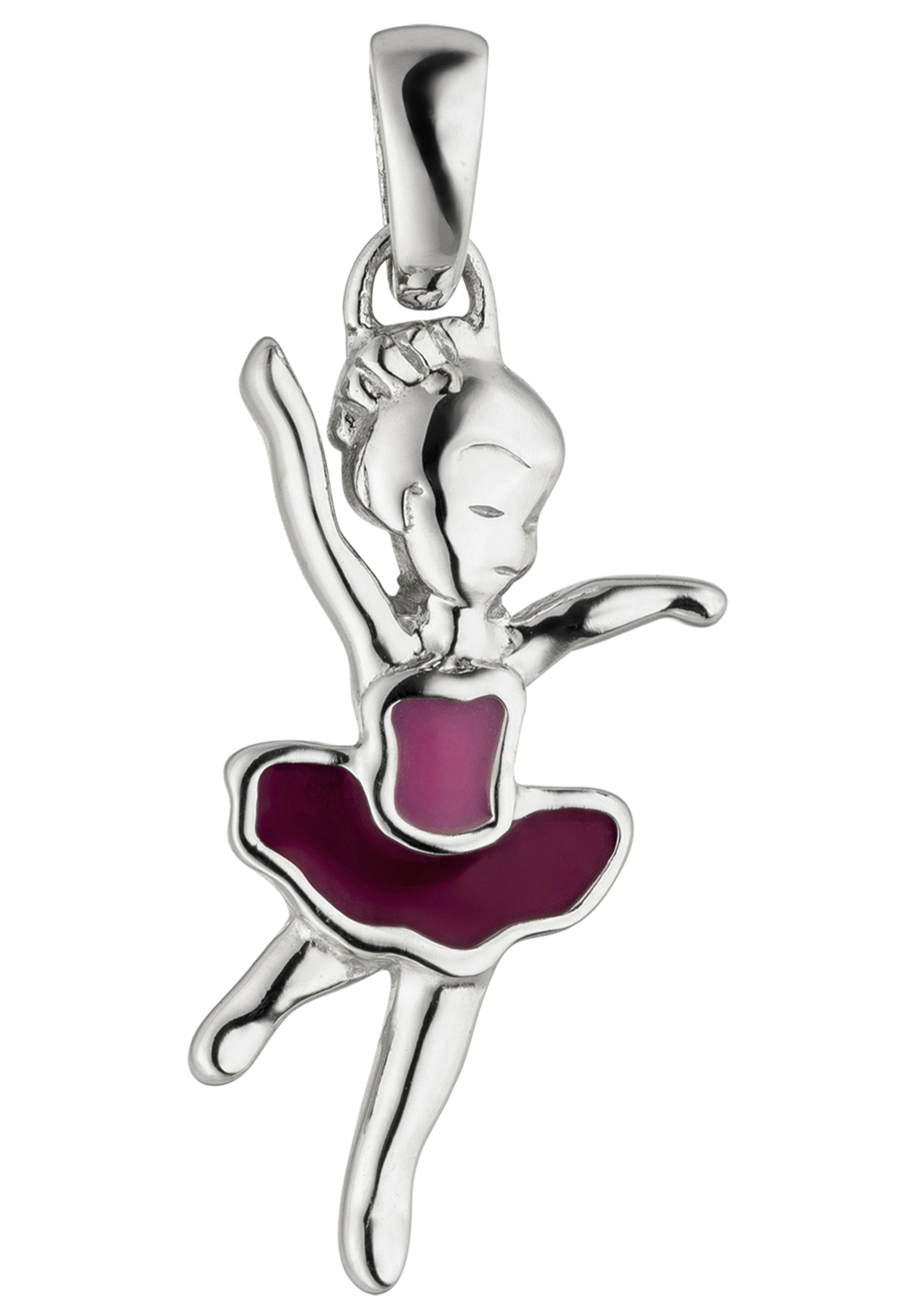Kinder-Anhänger 'Ballerina' aus 925 Sterlingsilber, rhodiniert, mit Emaille-Einlagen in den Far...