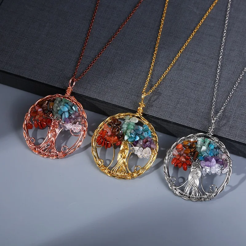 Mode Charme Baum des Lebens Kies Anhänger Weisheit Baum Chakra Reiki Heilung Naturstein Kristal...