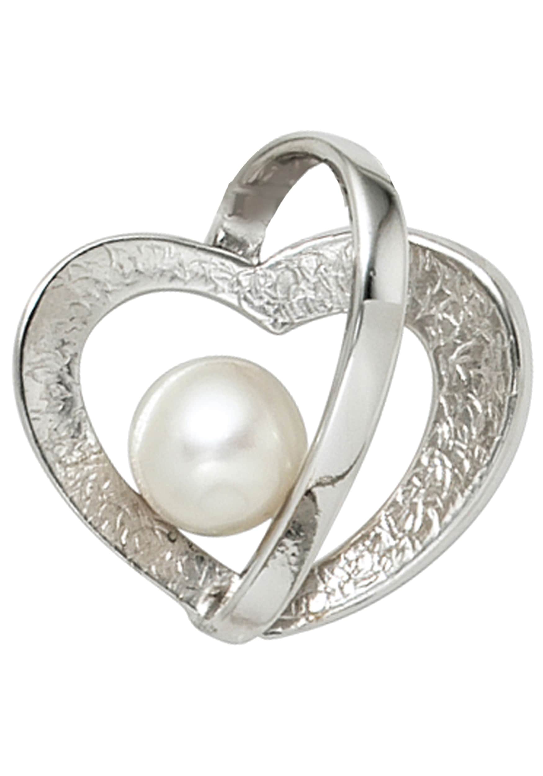 Anhänger 'Herz' aus 925 Sterlingsilber, rhodiniert und teileismatt, mit einer Süßwas...