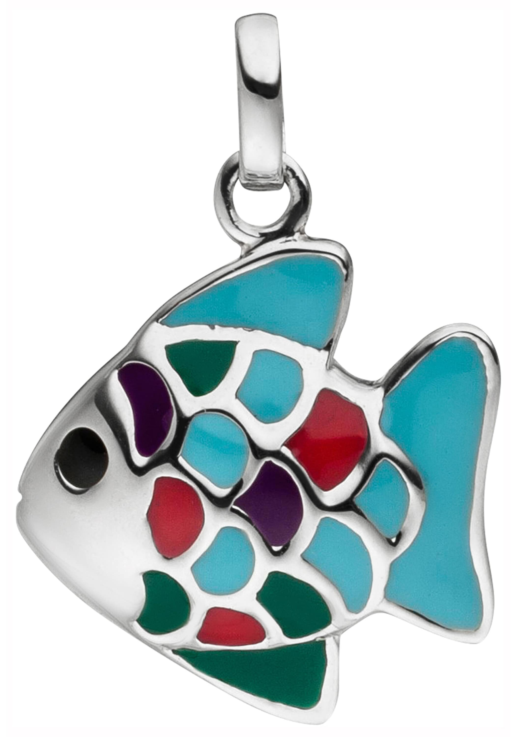 Anhänger 'Fisch' aus 925 Sterlingsilber, rhodiniert, mit bunten Emaille-Einlagen auf beiden Sei...
