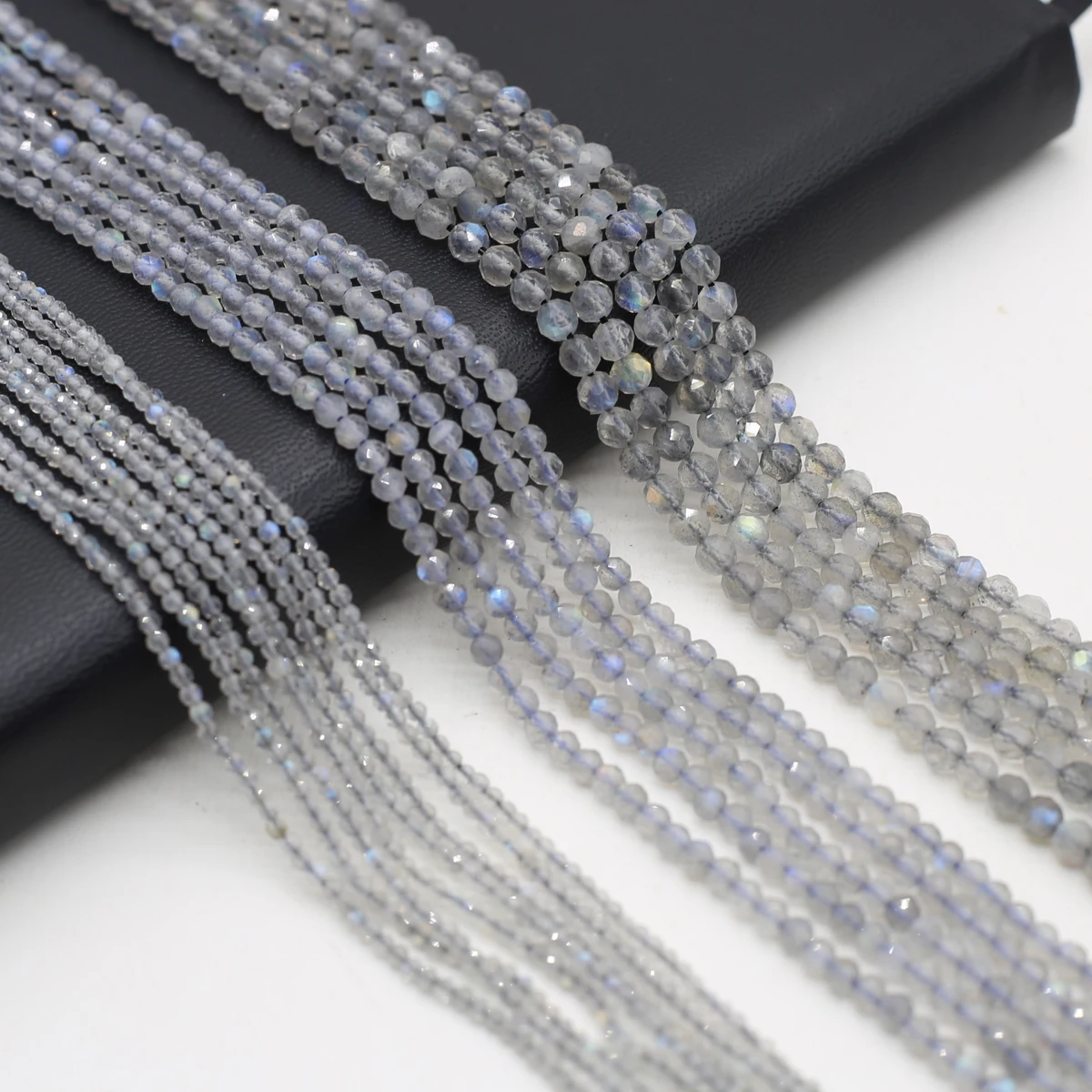 2/3/4mm Naturstein Runde Facettierte Perlen Flash Labradorit Spacer Perlen für Schmuck Machen D...