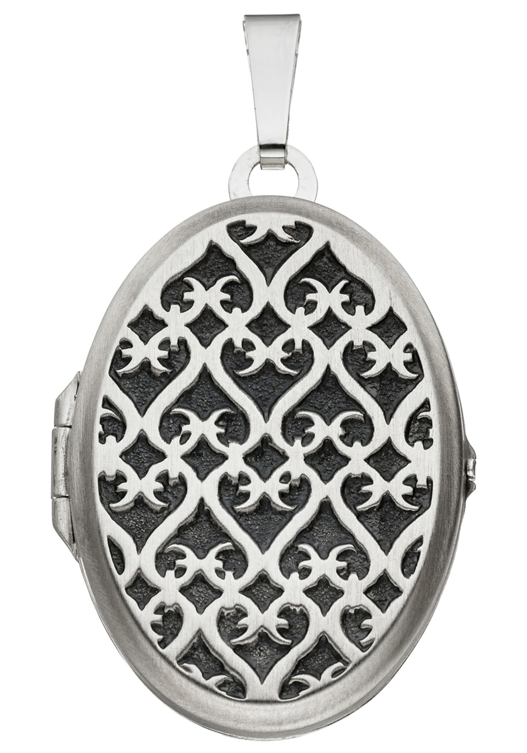 Ovales Medaillon aus 925 Sterlingsilber, rhodiniert, mattiert und teiloxydiert, für bis zu 2 Fo...