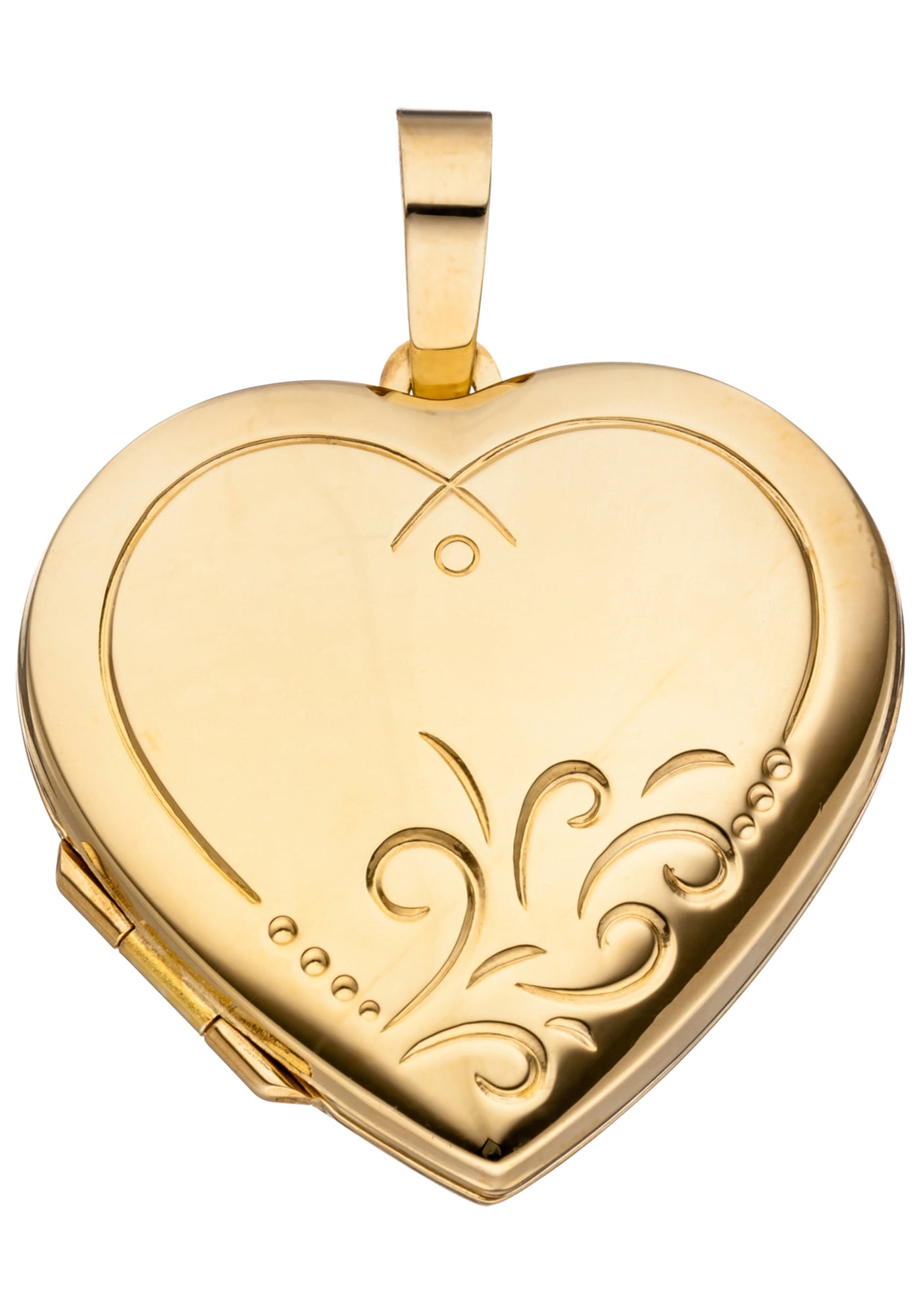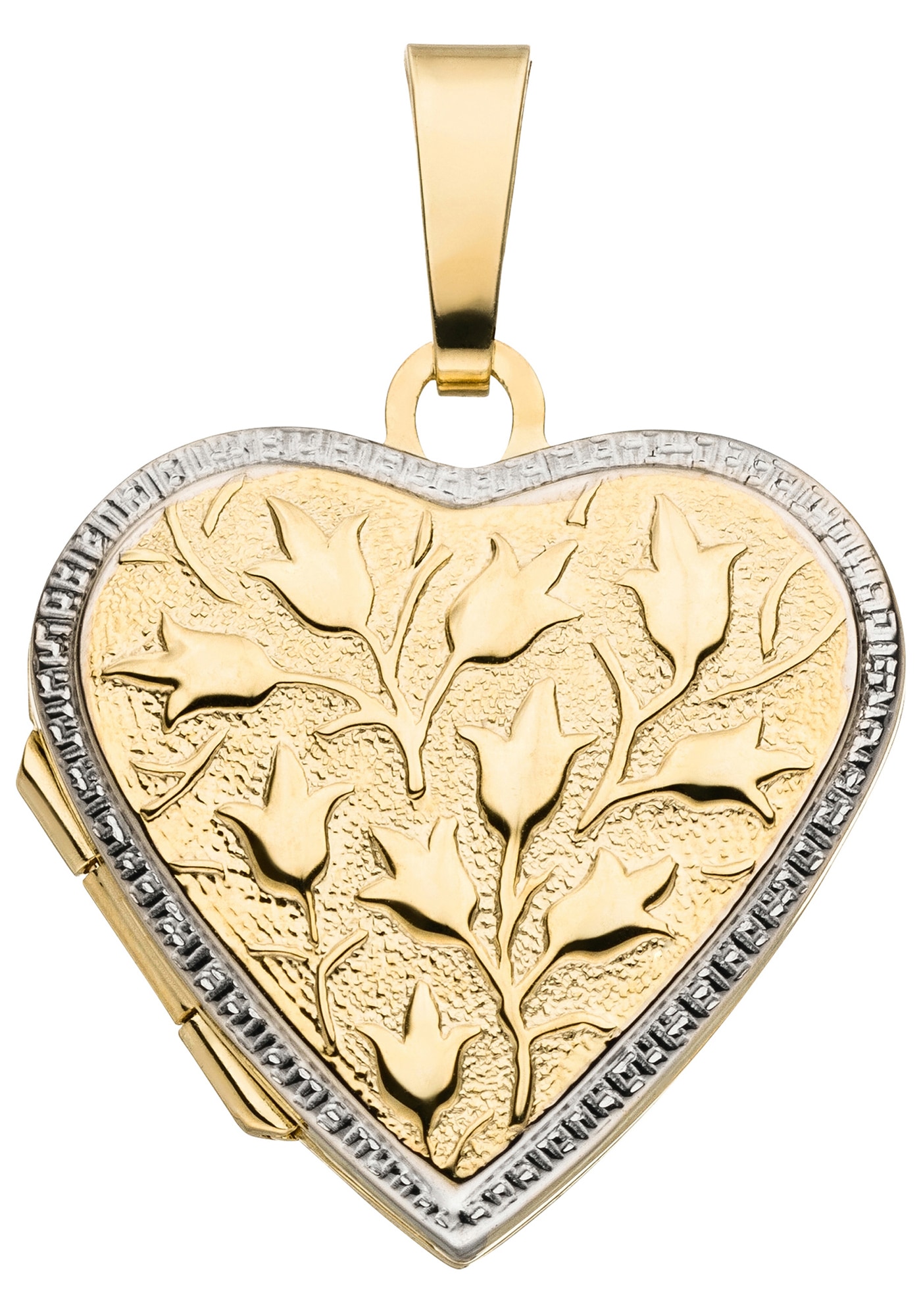 Medaillon 'Herz' aus 9 Karat (375) Gelbgold, teilrhodiniert, für bis zu 2 Fotos Höhe ca. 1...