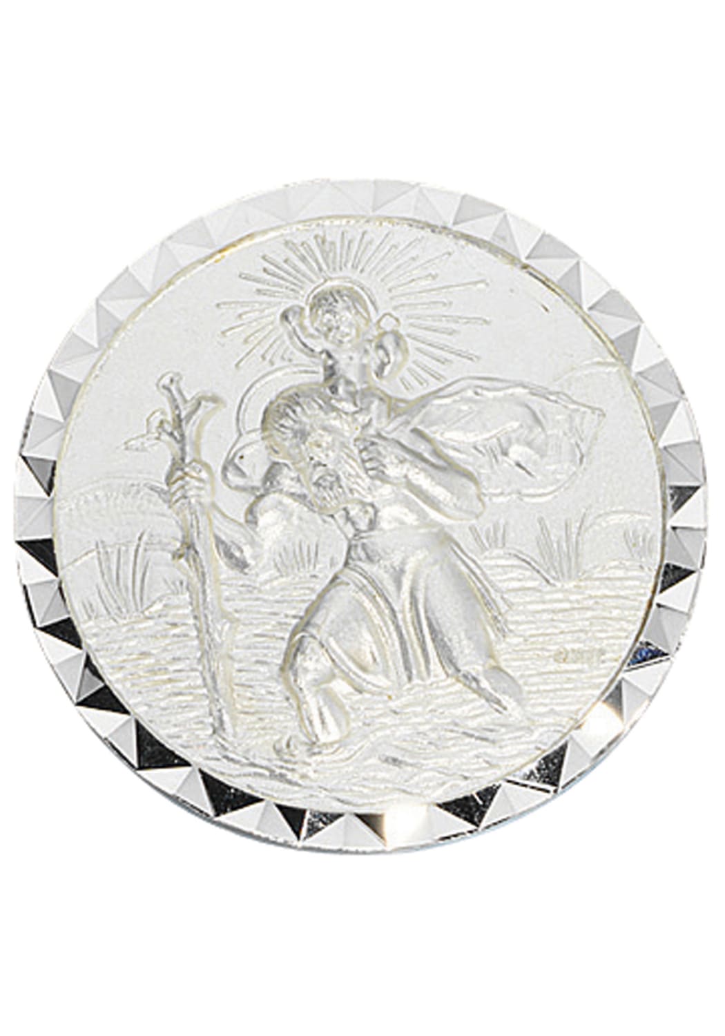 Autoplakette 'Christopherus' aus 925 Sterlingsilber, teilmattiert, mit magnetischem Klebepad Durchme...