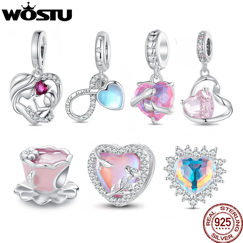 WOSTU 925 Sterling Silber Liebe Rosa Herz Charms Regenbogen Mondste...