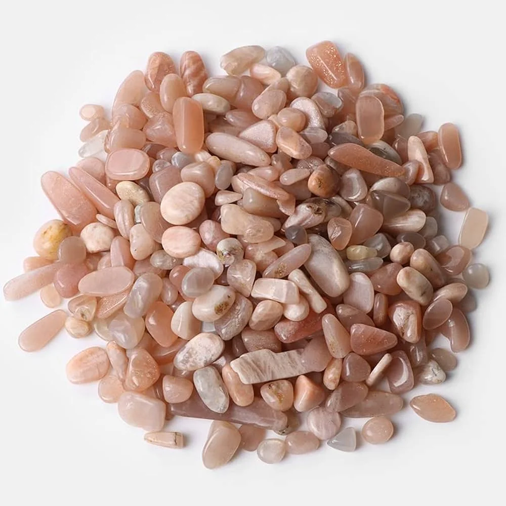 3–12 mm pfirsichfarbener Mondstein, halbgetrommelt, pfirsichfarbene Mondstein-Kristallsplitter...