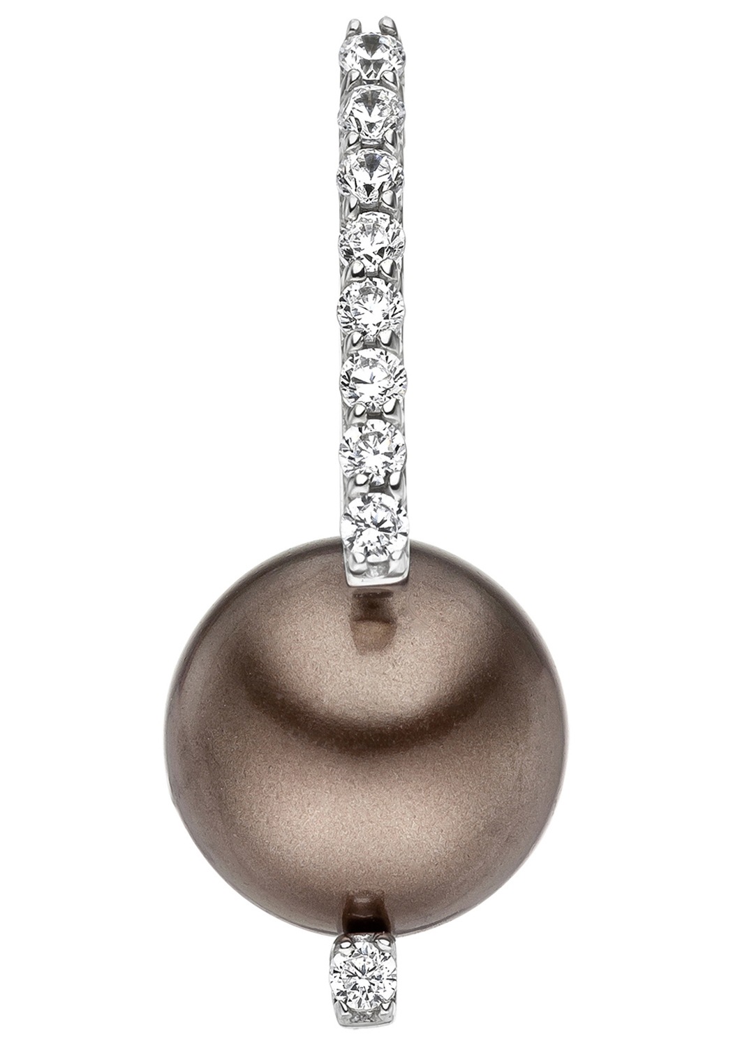 Anhänger aus 925 Sterlingsilber, rhodiniert, mit einer braunen synthetischen Perle und 9 Zirkon...