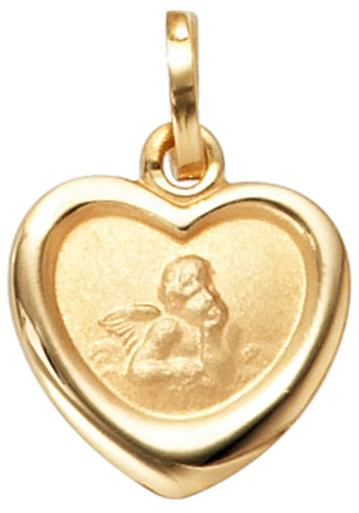 Herzanhänger 'Schutzengel' aus 8 Karat (333) Gelbgold, teilmattiert, mit rückseitiger Pr&a...