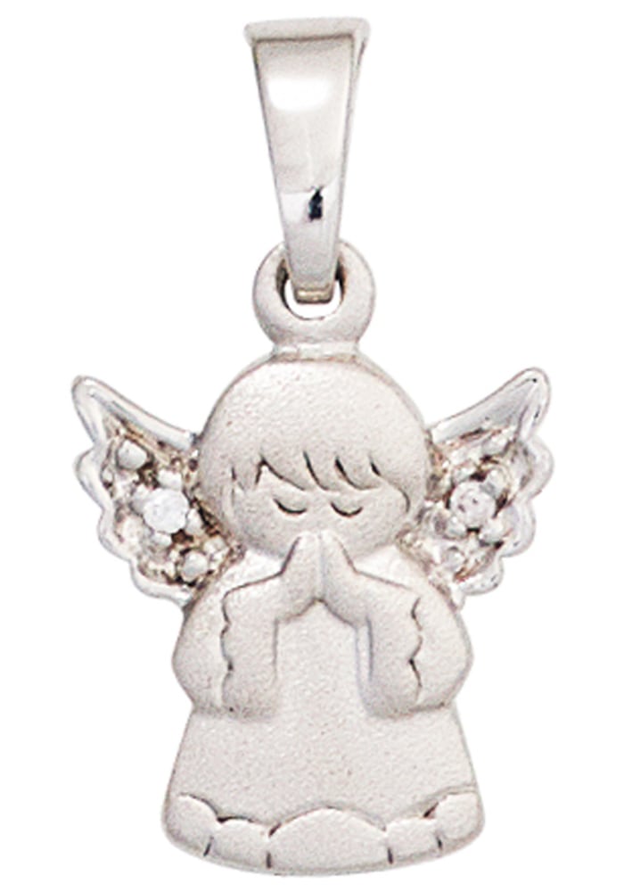 Anhänger 'Engel' aus 925 Sterlingsilber, rhodiniert und teilmattiert, mit 2 Zirkonia Höhe ...
