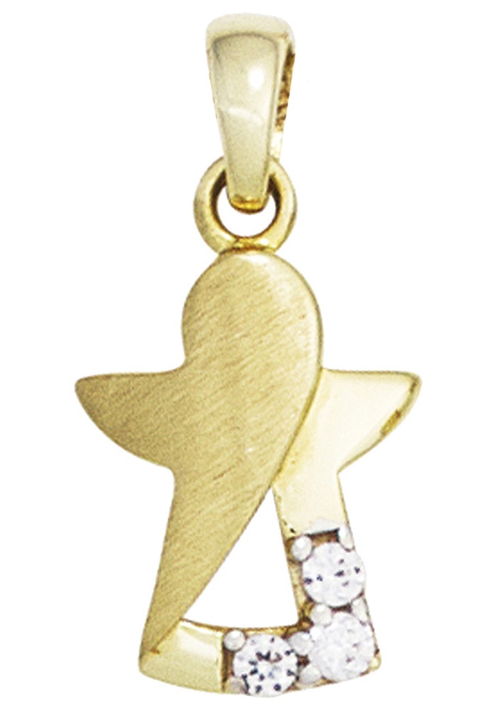 Anhänger 'Engel' ohne Kette aus 8 Karat (333) Gelbgold, teilmattiert und teilrhodiniert, mit 3 ...