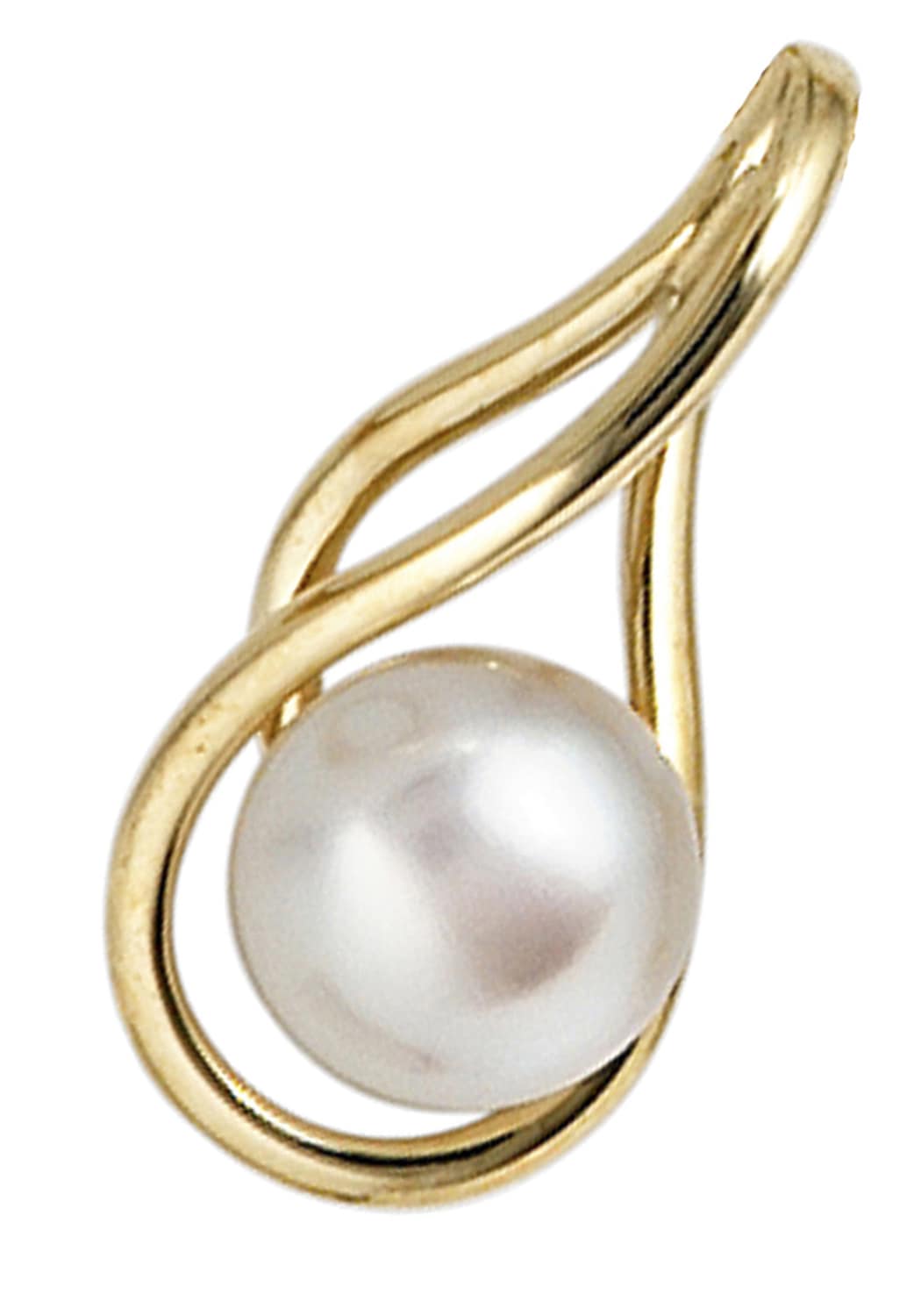 Anhänger aus 14 Karat (585) Gelbgold mit einer Süßwasser-Zuchtperle Höhe ca. 18...
