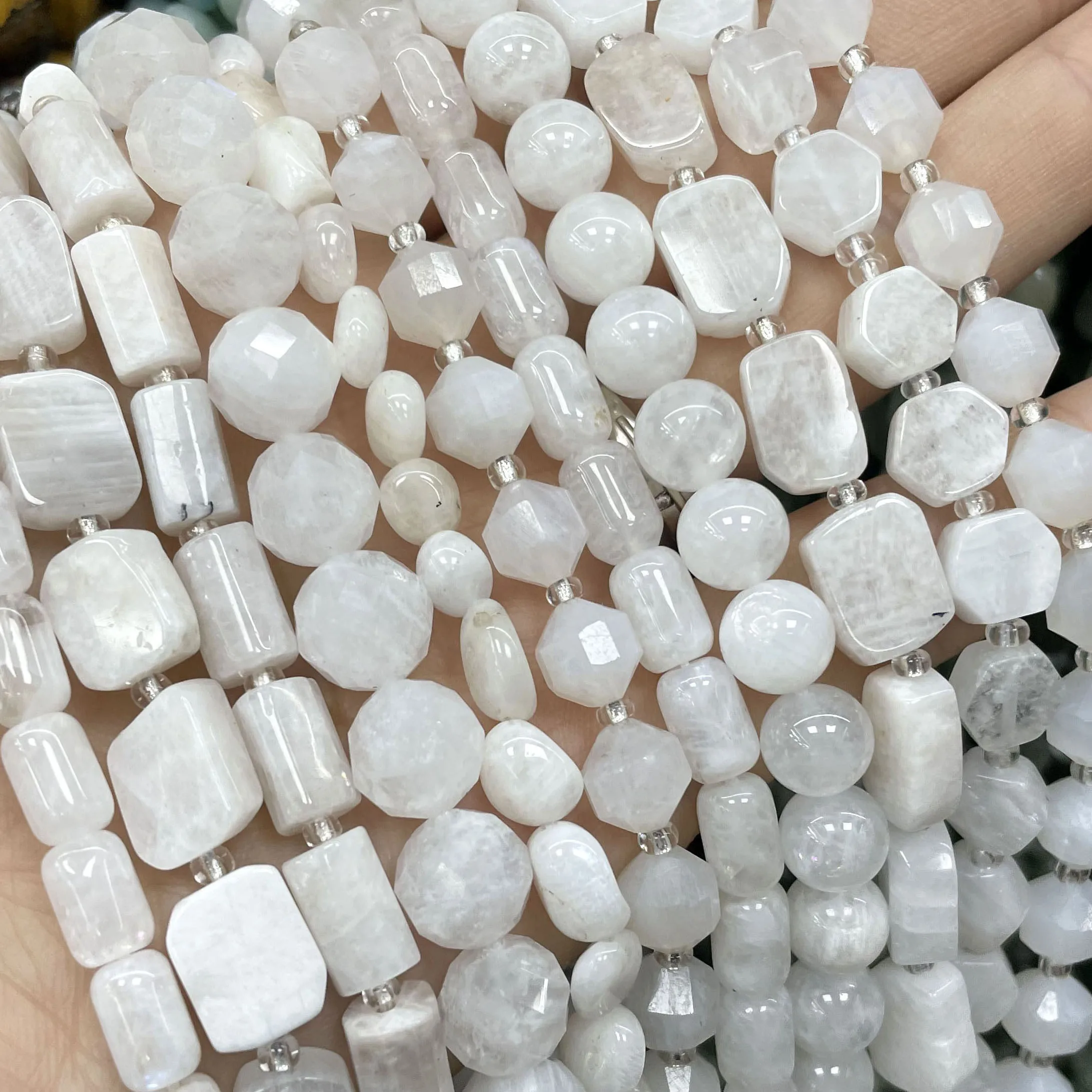 Moonstone Smooth Natural Round Faceted Cylinder Irregular Spacer Ge...