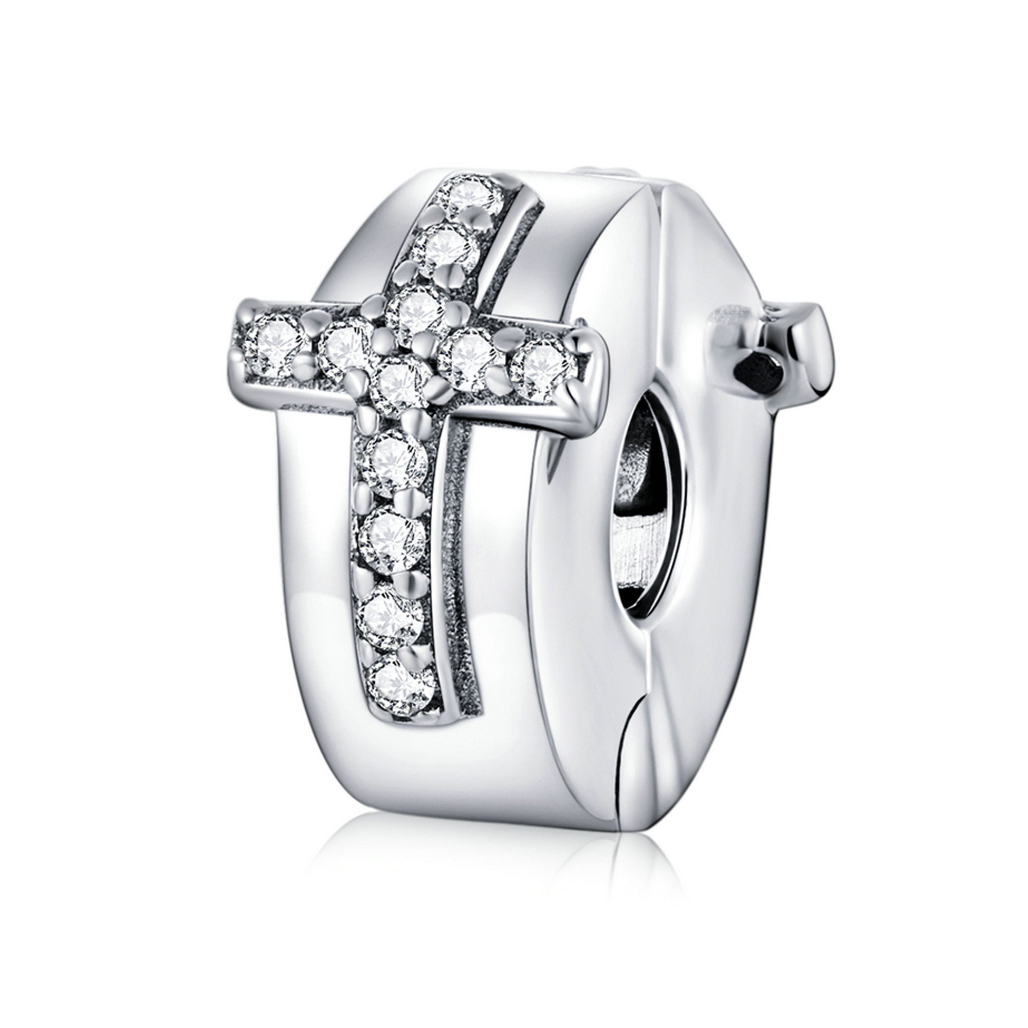 925 Sterling Silber Kreuz Clip Stopper Bead passend für Pandor...