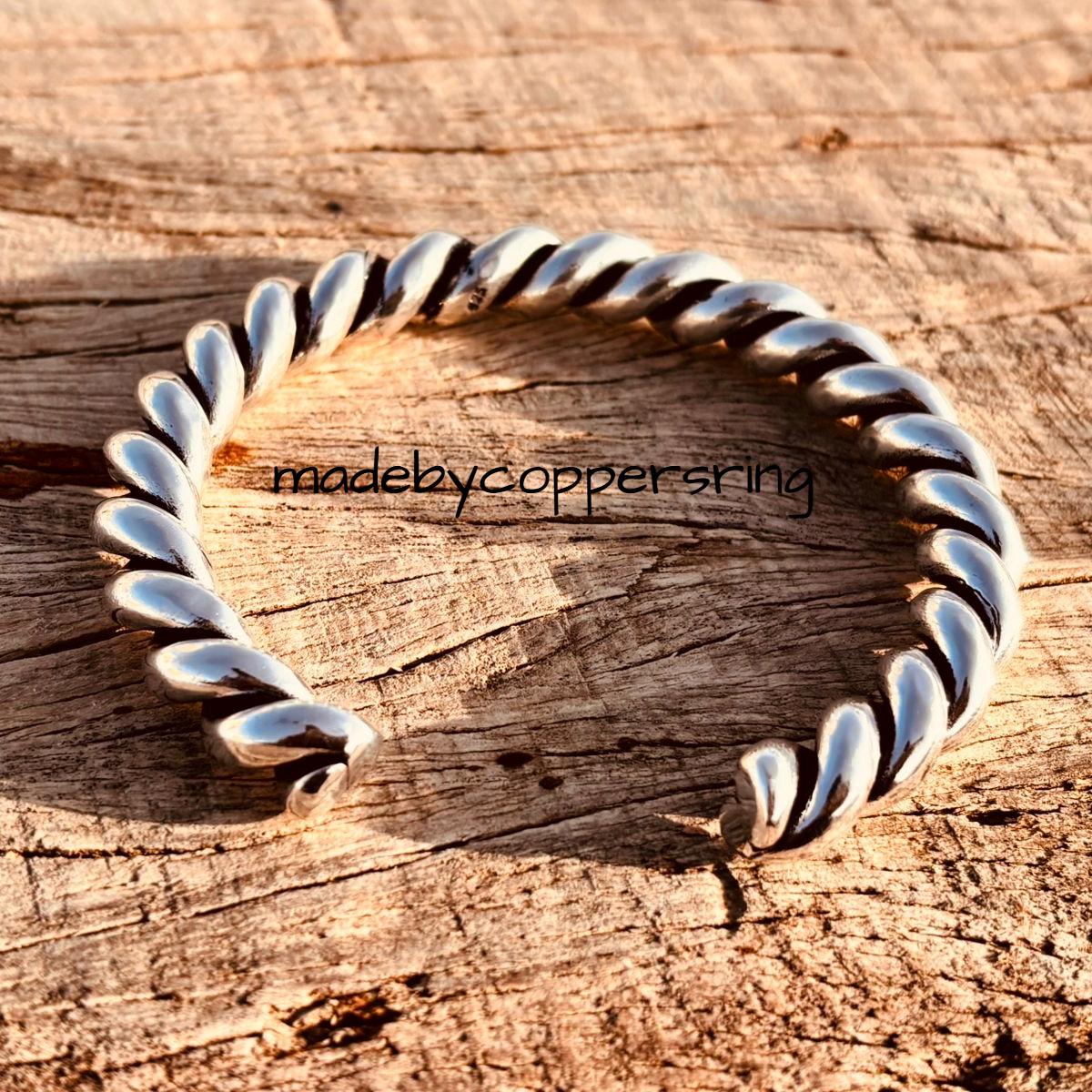 Welcome To My Shop Silver Twist Wire Cuff Bracelet Solid 925 Sterling Silver 10mm Twisted Bangle Bra...