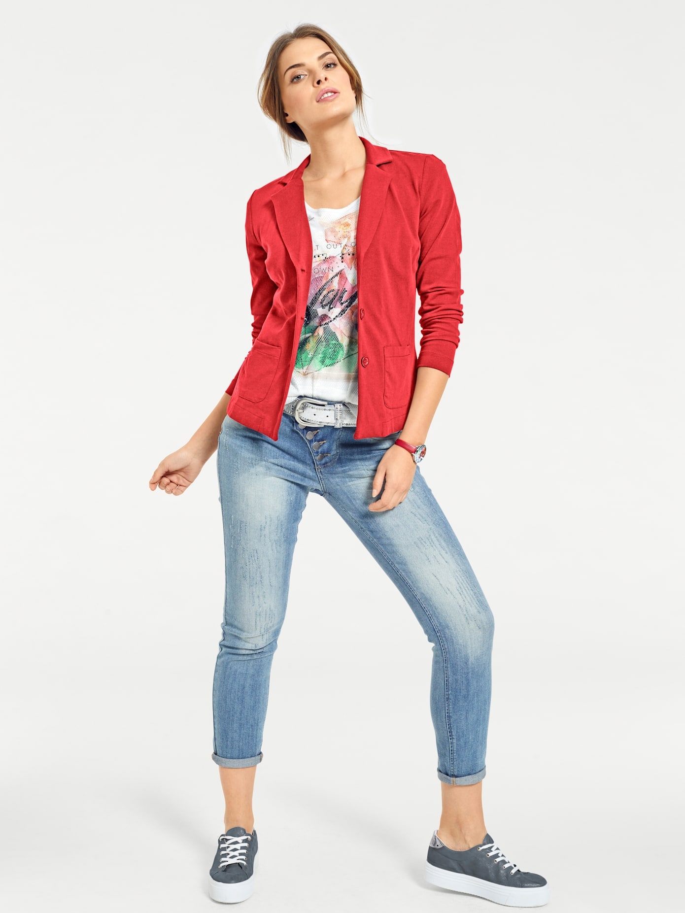 Jersey-Blazer Modisch figurbetont und im trendstarken Casual-Look. Mit Langarm und Knopfleiste. Weic...